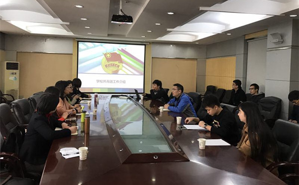 11月11日,在华中科技大学听取了团委副书记姚坦关于该校共青团工作赤诚、活泼、责任、智慧、担当五大体系的介绍,听取了参会人员关于学生组织建设、学生干部培养、大学生就业创业等方面的工作经验和做法。