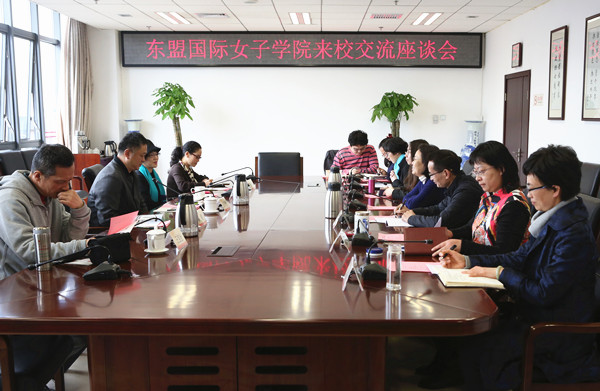 2016年3月15日,广西经济职业学院院长肖开宁、东盟女子学院院长何佳霖等一行五人,来访我校。中华女子学院院长刘利群及相关部门负责人参与交流。