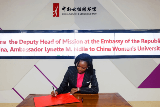 丽奈大使一行还参观了我校中国女性图书馆,并在留言簿上写到:感谢中华女子学院的热情接待,感谢贵校为非洲妇女赋能提供的宝贵机会,感谢贵校与肯尼亚的深厚友情,期待今后深化合作共赢,愿中肯友谊长存!