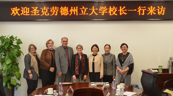 10月30日,美国圣克劳德州立大学校长罗宾﹒维克(Robbyn Wavker),助理副校长沙赫扎德﹒阿哈默德(Shahzad Ahmad),孔子学院院长凯西﹒约翰逊(Kathy Johnson),社区心理、咨询及家庭治疗系艾米﹒克诺夫(Amy Knopf)一行四人到我校访问并座谈。我校副院长王练接待了来宾并主持座谈,社会工作学院、国际合作处相关人员参加座谈。