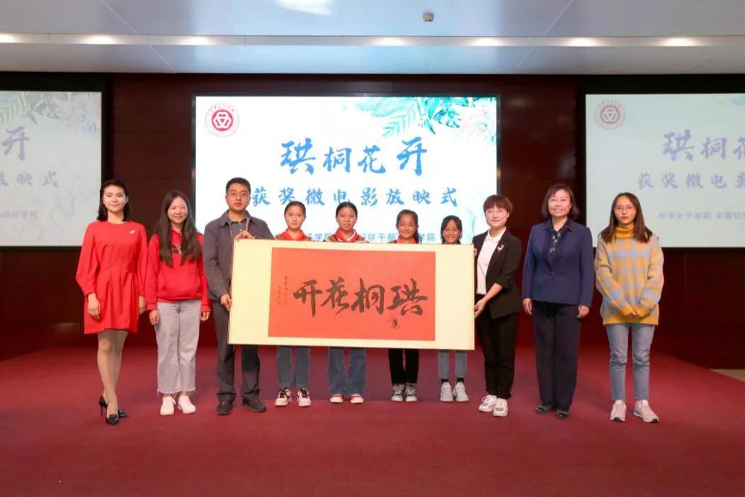放映式上,刘利群院长代表学校向来宾赠送了“爱心礼包”,学生代表向来宾赠送了“珙桐花开”字幅。