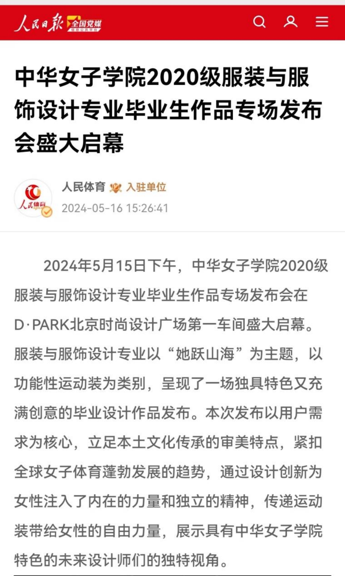 5月15日下午,中华女子学院2020级服装与服饰设计专业毕业生作品专场发布会在京成功举办。人民日报、中国网、腾讯、新浪、全球纺织网、澎湃新闻等多家主流及知名媒体平台进行相关报道,浏览点击率突破二十万,毕业优秀作品在中国妇女、中国大学生时装周、中华女子学院微信视频号同步展示。