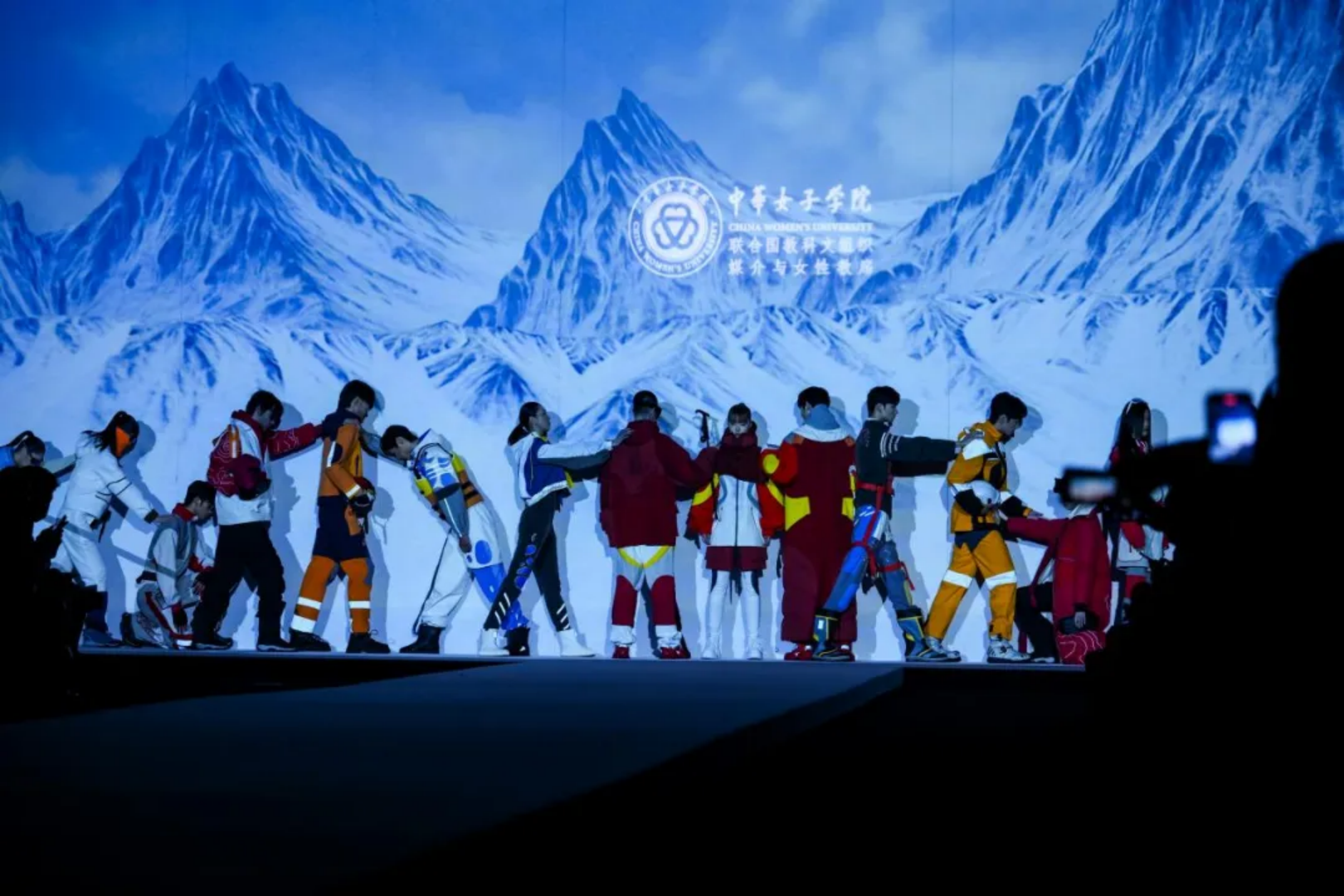 中华女子学院服装与服饰设计专业作为教育部国家一流专业建设点,以“一个强化、两个体系、三个核心”为专业特色,从人才培养、科学研究、社会服务和文化传承四个方面全面加强协同育人机制,将艺术与科学、时尚与健康、包容与可持续的学科交叉的设计理念融入人才培养环节。本次毕业秀以“她跃山海”为主题,谐音“踏跃山海”,意为展现在山海之间挑战自我极限的女性内在力量和独立精神,作品将视角延伸到不同的地域与人群,不仅在功能性设计上有着用户为本的关怀特性,更通过挖掘少数民族服饰文化和祖国壮丽山河的独特魅力,与使用者建立起更深刻的情感连接。设计作品满足各种充满挑战的户外运动的自然环境条件,同时运用模块化和胶囊式构思满足都市休闲与户外的快速切换,精彩亮点包括自然保护区工作装、户外救援和科学考察装等内容。作品充分体现了“运动+科技”“运动+时尚”“运动+可持续”“运动+文化传承”的“运动+”设计理念。