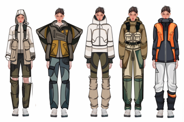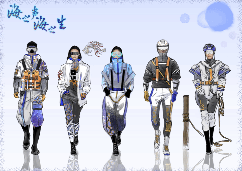 第一届“千禧”杯服装设计大赛银奖作品《景迈想象——景迈山科考队员工作服装系列设计》,设计师郝泽宇