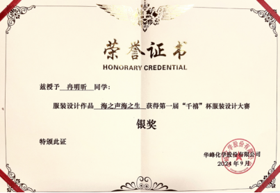 以“承‘峰’踏浪,运动至‘尚’”为主题的第一届“千禧”杯服装设计大赛经过专业评委的层层遴选,王露、刘川渤老师指导的2020级服装与服饰设计专业冉明昕同学,系列设计作品《海之声,海之声》斩获银奖;孙超老师指导的2022级服装与服饰设计专业赵子君、张盈盈、蔡多宁设计作品《常青冒险》获大赛最佳材料奖;王露老师指导的2020级服装与服饰设计专业郝泽宇同学设计的《景迈想象——景迈山科考队员工作服装系列设计》获优秀奖;王露、孙超、刘川渤老师获得大赛优秀指导教师奖;中华女子学院获大赛优秀组织奖。这些优秀作品参加了“华峰千禧 · 中国纤维品牌联动创享汇”在SS2025中国国际时装周上举行的首场品牌发布活动,几位同学的设计作品呈现青年设计师对前沿纤维面料的创新表达,探索运动时尚的全新边界。
