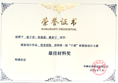 第一届“千禧”杯服装设计大赛最佳材料奖作品《常青冒险》,