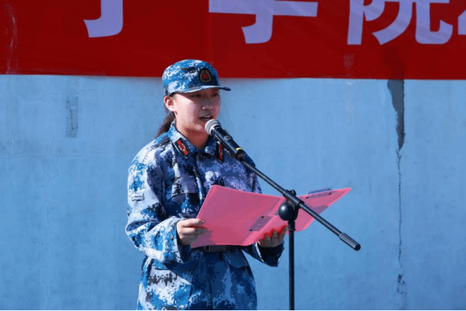 邢慧丽代表学校向全体承训官兵、军训团老师表示衷心感谢。她指出学校一直把军训作为大学生思想政治教育以及学生成长成才的重要载体,带动学生关注国防、参与国防、投身国防。她要求同学们刻苦训练,练出好身体、好作风;希望教官们言传身教,展示军人风采和担当;希望军训团科学管理,确保训练质量和效果,为中华人民共和国成立75周年,为女院建校75周年献礼!