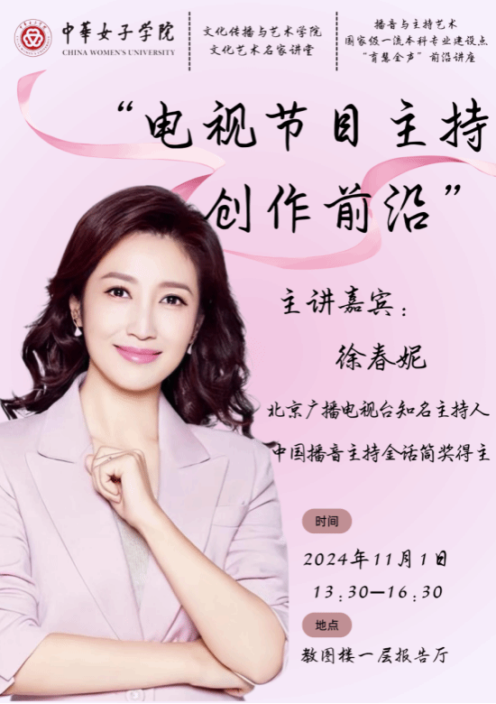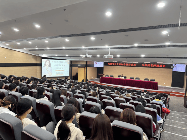 我校播音与主持艺术专业为进一步推进国家级一流本科专业建设,推动师生对专业实践前沿的探索,11月1日下午,特邀北京广播电视台著名主持人徐春妮老师在教图楼一楼报告厅举办主题为“电视节目主持创作前沿”的精彩讲座。此次讲座围绕新媒体与传统媒体的融合发展态势、主持人核心职业素养展开,是文化传播与艺术学院文化艺术名家讲堂系列之一。讲座给学生们在专业发展的新方向和行业前沿上提供了宝贵经验。播音与主持艺术、网络与新媒体及其他各专业学生共同聆听了讲座。