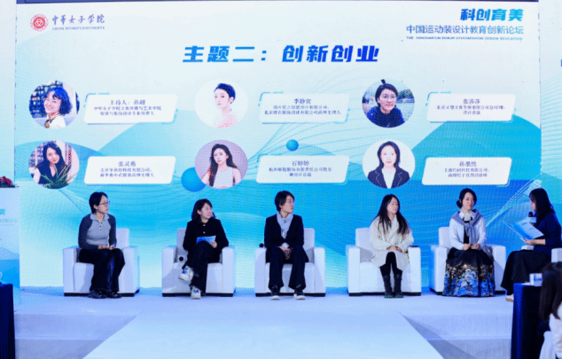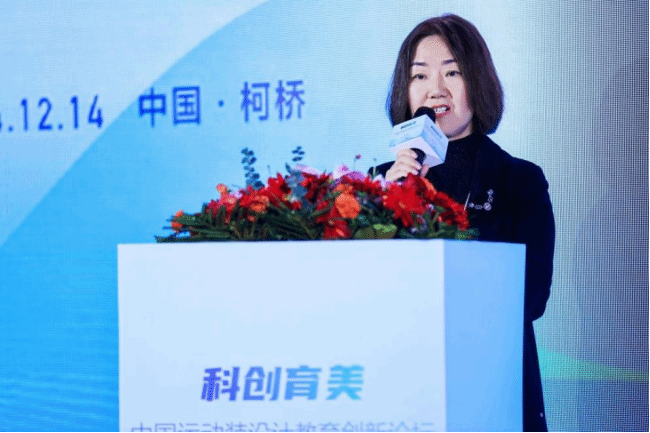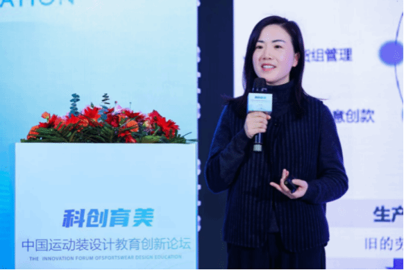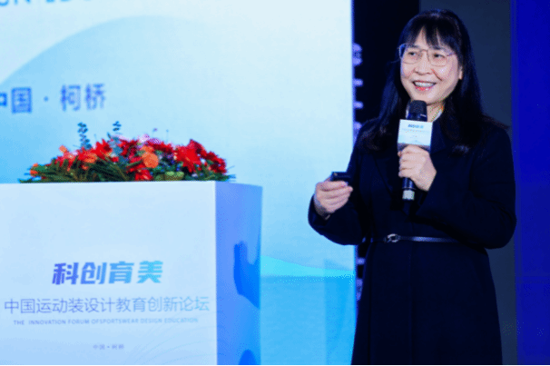 王露教授进行了《用户驱动的运动装设计创新探索》的演讲。她指出面对运动服装及装备在全球的巨大市场空间,中国运动装企业应抓住用户需求转向个性化、专业化和可持续化的机遇进行创新和升级。运动装设计创新方法是以用户需求为驱动,包含探究、创新和评估的系统性科学性的设计流程,流程对运动装设计课程的教学设计、教学理念与方法有着指导性作用。她从运动装设计创新理念、实践教学平台的合作与育人成果几方面,生动地介绍了中华女子学院服装与服饰设计专业如何将“科技与艺术、时尚与健康、包容与可持续”的跨学科设计教育理念融入创新人才培养,以及国家级一流本科专业建设的阶段性成果。