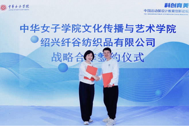 中华女子学院副院长韩燕、文化传播与艺术学院党总支副书记刘洪玉与在场嘉宾进行了“创新创业导师”聘任仪式,中华女子学院文化传播与艺术学院与绍兴纤谷纺织品有限公司签订了战略合作协议。希望以此充分发挥校外导师和平台优势,紧密对接市场需求,持续优化人才培养模式,不断提升教育教学水平。