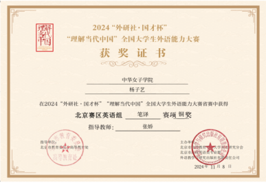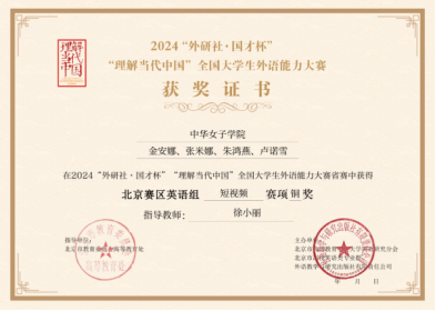 喜讯:女院师生在2024“外研社·国才杯”“理解当代中国”全国大学生外语能力大赛中斩获佳绩