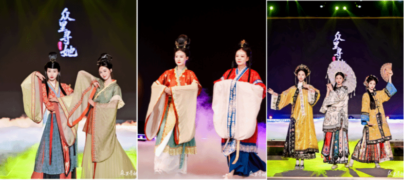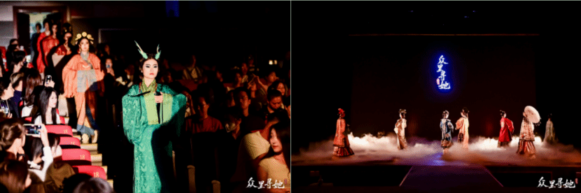 本次展演共选择了流落海外的18件文物,涵盖宋代瓷器、青铜器、女史箴图以及明清时期的各类文物,以其历史背景、工艺特点、现存状况为基础,结合文物内涵及造型元素,以文物拟人视角将存放在海外博物馆的中国文物生动演绎。与以往服装表演T台秀不同的是,本次演出结合了情景演绎、舞蹈身韵、形体表现及语言艺术表达,创造了一种T台情景秀表演的新形式。