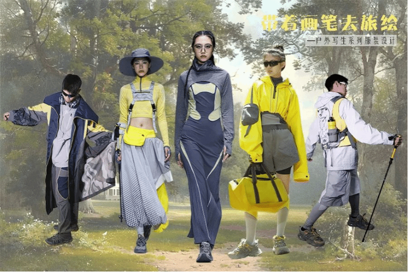 在以“华”韵新章,“峰”尚领航为主题的第二届“千禧”杯服装设计大赛中,邵馨巧(作品《荒野之韵》)、綦若涵(作品《漠野灵踪》)、邝艺琳(作品《怡然听风》、钱李欢(作品《领风》)四位同学的作品成功入围决赛。她们聚焦科技感与时代性,运用创新纤维材料,对运动功能进行了前沿表达,展现了新一代设计师的活力与潜力。