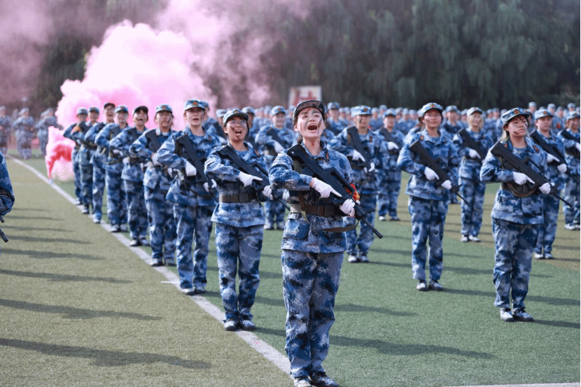 军训训练成果展示精彩纷呈。分列式上,同学们士气高昂、步伐铿锵,赢得阵阵掌声。特色科目展示中,坦克旗语、匕首操、刺杀操、军体拳、格斗术、战术演练,同学们身手敏捷、飒爽英姿。