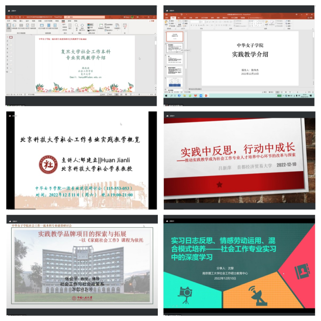 为了突出中华女子学院社会工作实践教学特色,提升社会工作一流本科专业建设水平,2022年12月10日,社会工作学院召开了社会工作一流本科专业建设研讨会实践教学专场。出席此次研讨会的专家有中国人民大学社会工作与社会政策系张会平教授、北京科技大学社会学系郇建立教授、首都经贸大学社会工作系吕新萍教授、南京理工大学社会学系沈黎教授、复旦大学社会工作学系韩央迪副教授。中华女子学院副院长周应江教授在会议上致辞,会议由社会工作学院院长李敏教授主持。