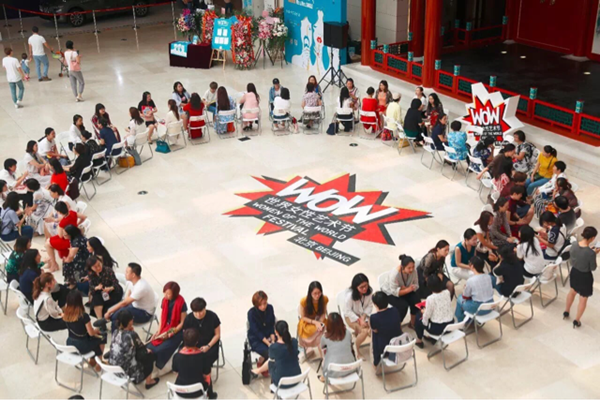 艺术节期间,女院志愿者与其他高校的志愿者共同服务了近3000观众,参与了演讲、沙龙漫谈、访谈等谈话类节目12场,速配辅导、工作坊等社交体验类活动8场,以及30个市集展位、6场即兴表演等协助工作。