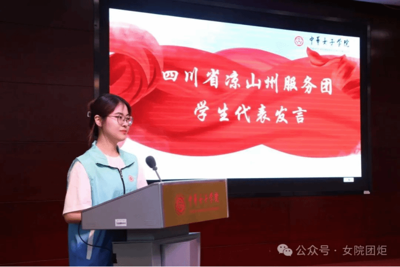 即将赴四川省凉山州开展“树新风 促振兴”妇女儿童关爱活动的国际教育学院学生常檬元,在发言中表达了完成此次实践任务的热情和决心。