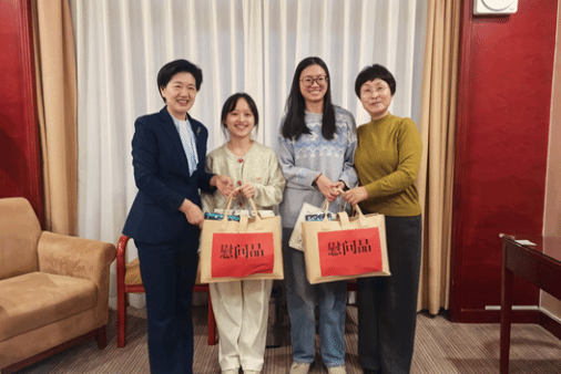 2024年中华女子学院有13名毕业生入选西部计划新疆志愿者。在乌鲁木齐,刘亚玫、李灵慧一行专程看望慰问在疆服务的西部计划志愿者代表、中华女子学院管理学院2024届毕业生张颖、陈彬彬,为她们发放了新春慰问品。两位志愿者向老师们汇报了半年来在疆工作的情况和取得的进步,刘亚玫充分肯定她们扎根西部、建设新疆、奉献青春的正确选择,叮嘱她们要向学妹们介绍入选经验,宣讲服务经历,吸引更多的女院学子到广阔的西部建功立业,让青春在祖国最需要的地方绽放绚烂之花。