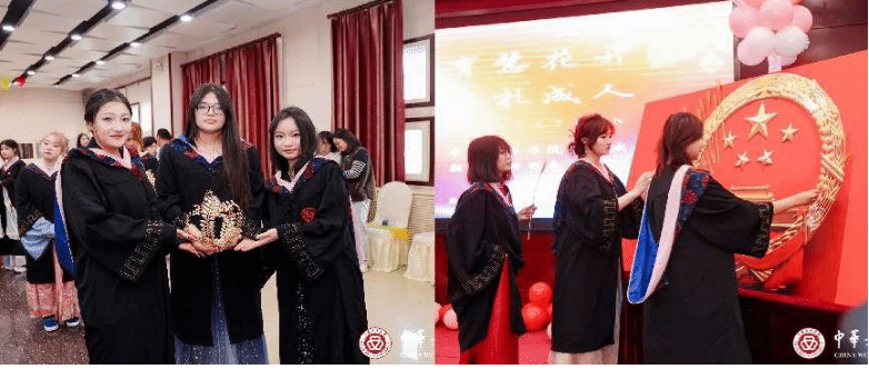 成人礼的舞台,宛星芒耀烁心湖。经簪笄之仪,明责任如岳;历冠笄之礼,晓征途若川。于中华女院此境,悟修养深义,感礼仪芳华,誓以成年之勇,绘未来绮霞。