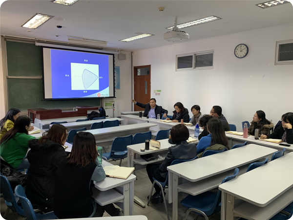 之后,李明舜从一名具有近三十年教龄的资深教师的视角,对思政部马瑞萍老师的授课进行了中肯点评。既肯定了马老师深厚的理论基础和认真的备课态度,又指出教学对象在教学活动中主体地位和重要意义,并结合自身教学过程,生动讲述了调动学生积极性与参与性的宝贵经验和具体方法,提出思想政治理论课教学可以充分借鉴学习“学校的先进性别文化教育的方法”——在提倡中倡导、在澄清中明确、在教育中灌输、在撬动中嵌入、在互动中渗透、在否定中纠正,建议采用多种教学手段,努力撬动和纠正学生的错误认识,从而实现思想政治教育立德树人的根本任务。
