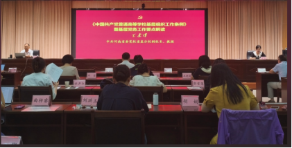 为深入学习贯彻习近平新时代中国特色社会主义思想,在深入开展中央八项规定精神学习教育之际,学校党委于7月7日至12日在河南南阳市党支部书记学院举办基层党组织书记培训班。党委副书记赵浩带队,党委常委、党委组织部(党委统战部)部长张霞,党总支、党支部书记30余人参加培训。