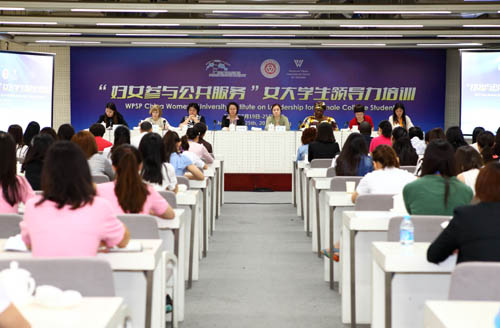 本次培训班项目是我校与美国伍德罗威尔逊国际学者中心“妇女参与公共服务”项目办公室合作开展的女大学生领导力培训班的继续。项目时间为2015年7月19日7月26日。参加今年培训班的除我校20名同学外,还有来自湖南女子学院、山东女子学院、南京师范大学金陵女子学院、同济大学女子学院、上海师范大学女子学院、广东女子职业技术学院的40名同学。她们将以此为平台,加深交流,促进友谊,共同成长。(张建华)