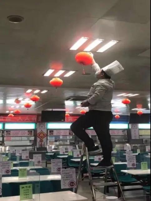 张灯结彩,营造喜庆祥和的节日氛围。春节前夕,食堂采买了灯笼、春联、福字及吉祥牛纪念品,布置在食堂内。同时配合宣传部以悬挂条幅、布置展板的方式将校园装饰一新,喜庆的新春氛围营造中,不忘提醒师生厉行节约,践行“光盘行动”。