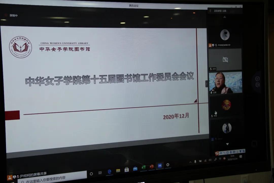 2020年在伟大的抗疫精神感召下,中华女子学院图书馆认真贯彻全国妇联、学校党委的指示精神,服务于学院改革发展目标,不忘初心,为学院教学和科研做好资源保障工作,在“十四五”开局之年,做好顶层设计。中华女子学院第十五届图书馆工作委员会线上会议于12月24日上午召开,学校党委书记李明舜教授,学校党委常委、副院长、图书馆工作委员会主任王练教授,图书馆工作委员会委员出席会议。