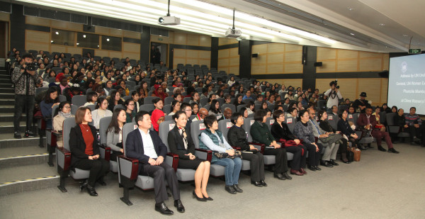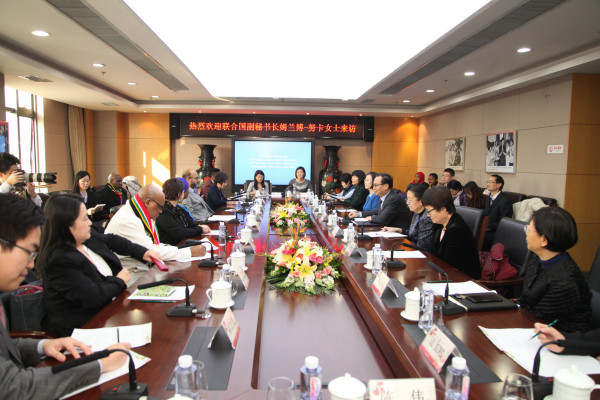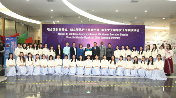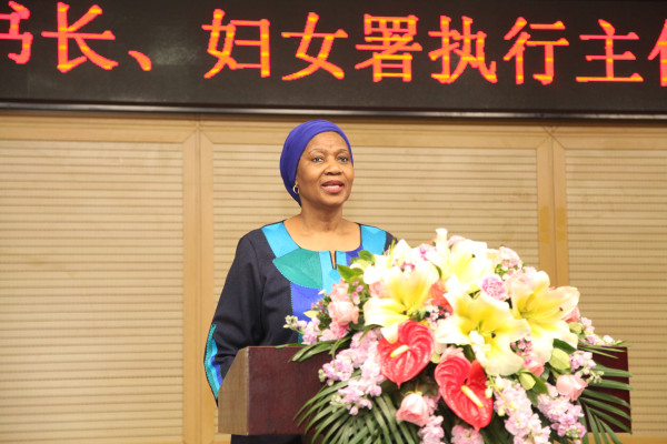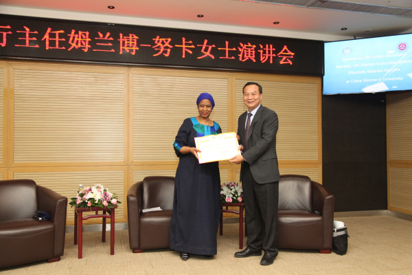 12月14日下午,联合国副秘书长、妇女署执行主任姆兰博-努卡女士在我校一层报告厅发表演讲并受聘为中华女子学院荣誉教授。努卡女士在演讲中高度赞扬习近平主席和中国政府对全球妇女发展的重视和支持,高度评价中国妇女发展成就和中国妇女发展经验以及学校致力于推动女性教育、维护妇女权益和服务妇女发展等方面的重大贡献。