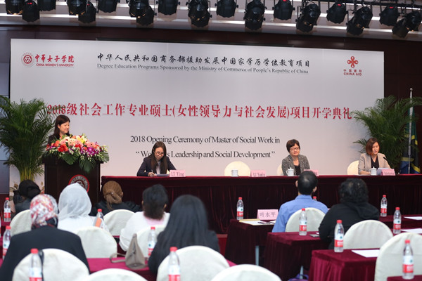 9月27日下午,中国商务部援助发展中国家学历学位教育项目2018级社会工作专业硕士(女性领导力与社会发展)开学典礼在中华女子学院举行,来自十六个发展中国家的近三十名学员将在这里进行为期两年的学习。全国妇联联络部副部长卢亚民、中华女子学院副院长刘梦出席开幕式并致辞。