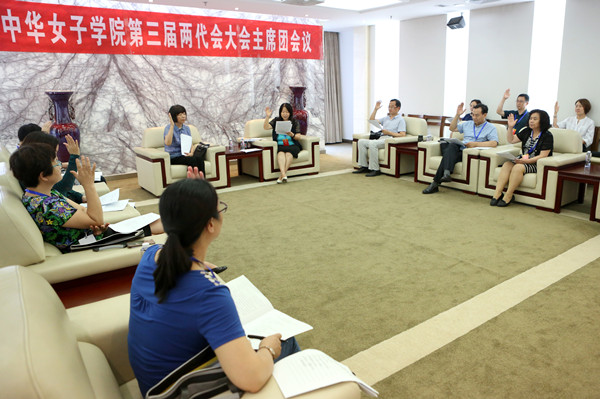 2018年7月16日上午,中华女子学院第三届教职工暨工会会员代表大会(以下简称“两代会”)预备会议在教图楼一层报告厅举行。会议应到代表115名,实到代表109名,请假6名,出席人数符合法定人数。学校党委书记李明舜,院长刘利群,副院长刘梦、王京霞、王练出席会议。党委副书记、纪委书记任翠茹主持会议。