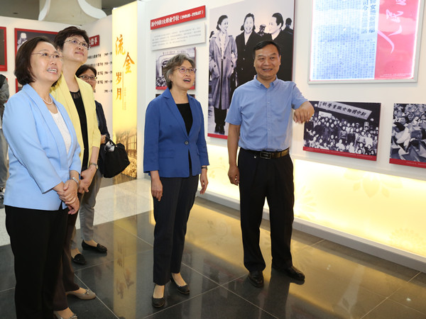 在校史馆,学生志愿者向黄晓薇介绍了学校的发展历程,在详细了解学校的办学历史后,她指出,广大妇女干部要学习老一辈妇女运动领袖深入基层、艰苦奋斗的精神。黄晓薇对中华女子学院为培养知性高雅的新时代女大学生所做出的贡献给予肯定。她强调,要充分挖掘特色资源,在参与社会志愿服务活动等方面打出响亮品牌,发出新时代女院强音。
