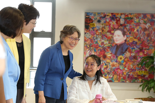 黄晓薇一行还考察了中国女性图书馆,查看了党和国家多位领导人为学校捐赠的大量图书展示窗,听取了图书馆工作人员关于《中国妇女口述史》等丛书编撰情况的介绍。黄晓薇来到学生身边,亲切询问了学生专业学习及生活情况。