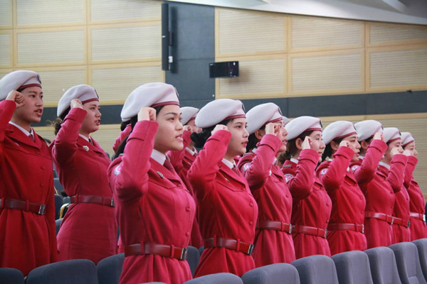 5月12日,北京市部分高校国旗护卫队交流展示暨中华女子学院国旗班五周年换届仪式在我校成功举办。来自北京航空航天大学、中国石油大学(北京)、清华大学、北京化工大学等13所高校的国旗护卫队受邀参加了此次活动。