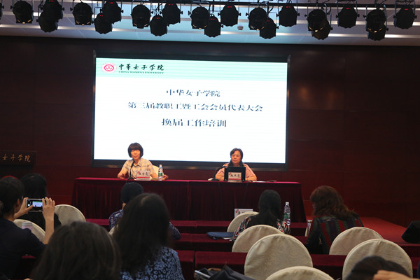 6月14日,中华女子学院第三届教职工暨工会会员代表大会换届工作培训会议在学校多功能厅举行。各院系党总支书记、分工会主席、委员参加了会议。副院长王京霞主持会议并讲话。