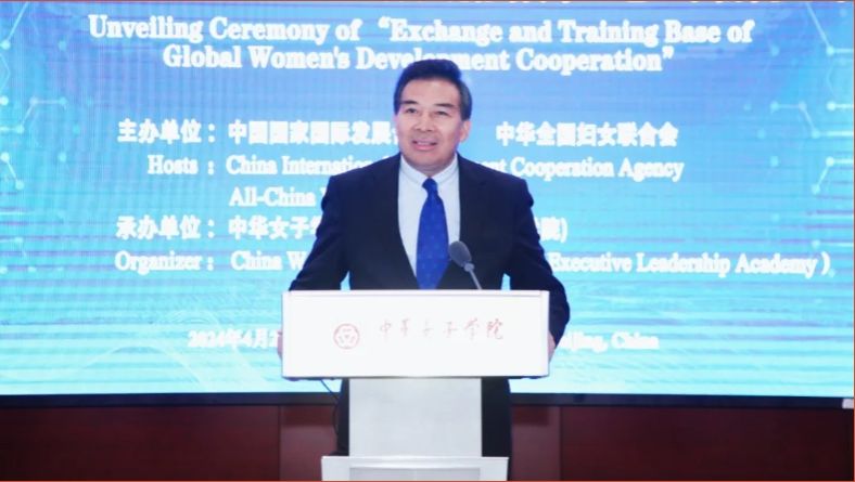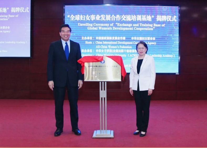 4月29日,“全球妇女发展合作交流培训基地”揭牌仪式在我校举行。全国妇联党组书记、副主席、书记处第一书记黄晓薇,国家国际发展合作署党组书记、署长罗照辉出席活动,共同为基地揭牌并致辞。联合国系统驻华协调员常启德、联合国妇女署中国办公室主任安思齐出席活动并致辞。