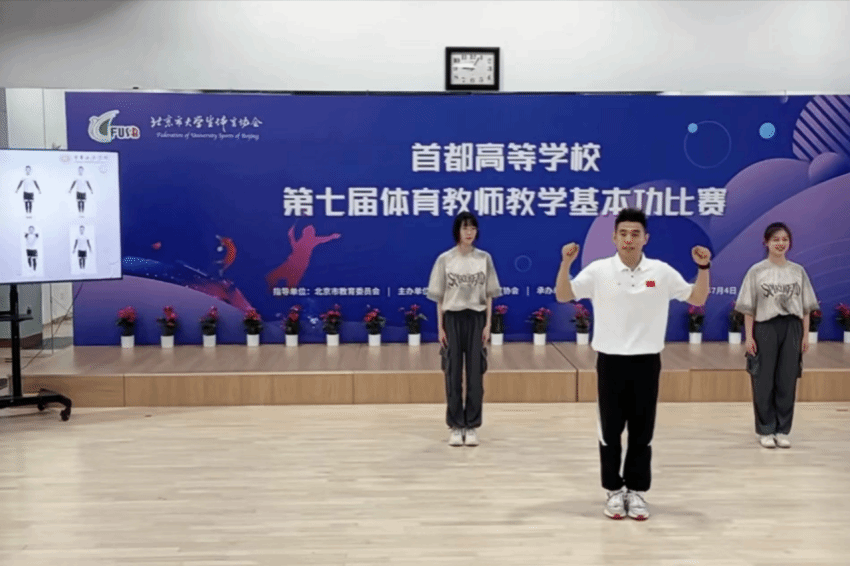 7月4日,由北京市教育委员会指导、北京市大学生体育协会主办的首都高校第七届体育教师教学基本功比赛在北京交通大学举办,来自首都27所高校的27名体育教师参加了此次比赛。我校体育部教师潘朝阳在比赛中斩获一等奖,这也是我校体育教师参加此类比赛获得的最佳成绩,为我校赢得了荣誉!