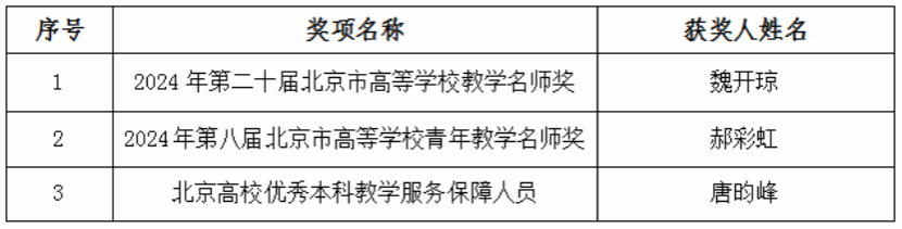 近日,北京市教育委员会公布了2024年北京高校本科教学项目建设评选结果,我校再创佳绩,共荣获各类本科高层次教育教学类成果17项。