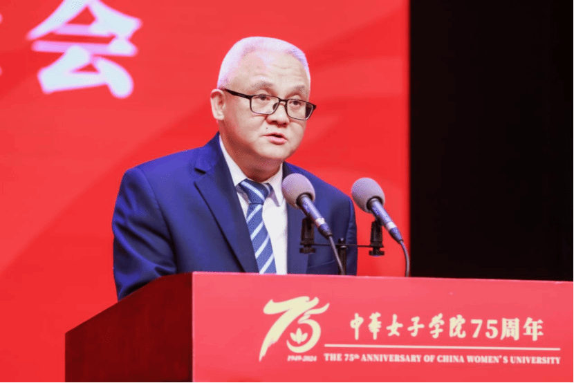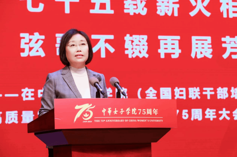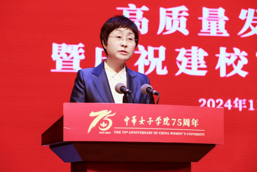 中国传媒大学党委书记廖祥忠代表兄弟院校致辞,对中华女子学院建校75周年表示热烈祝贺。他在致辞中表示,学校始终与党同心、与时代同频、与妇女事业同行,展现了新中国女性“巾帼不让须眉”的豪情壮志和追求卓越、心系家国、服务社会的奋斗精神,在探索女性成长成才规律、践行男女平等、服务妇女全面发展中作出了不可磨灭的贡献。两校有着共同的红色基因、共同的价值追求、共同的使命责任,为推动全球女性教育及构建人类命运共同体作出了积极贡献。他期盼中华女子学院在新征程里,不断汇聚学科优势和人才优势,谱写建设“一流女子大学和国家级干部培训学院”的新篇章,开启助力妇女事业高质量发展的新纪元。