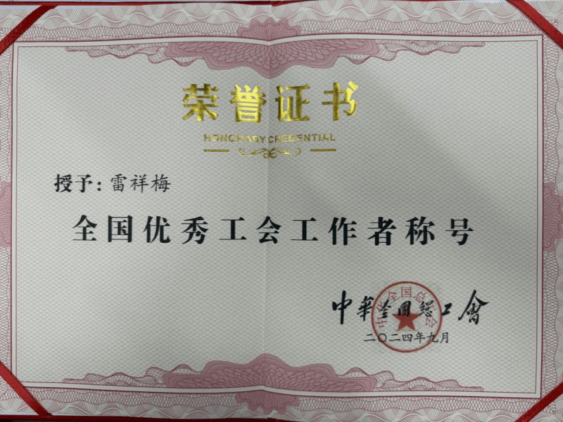 近日,我校工会(妇委会)雷祥梅同志被中华全国总工会授予“全国优秀工会工作者”光荣称号。