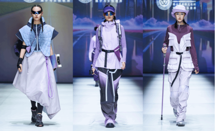 本次发布会的总策划,文化传播与艺术学院院长王露阐释了“悦途她乡”的深意:在后疫情时代,“出发”不仅是地理迁徙,更是心灵的疗愈与重塑。悦途她乡是这次旅途的起点,设计不仅为这场旅途带来身体上的舒适、安全和便利,还成为旅途中抚慰灵魂、寄托情感的媒介。毕业生们以用户需求为核心,将包容性设计理念贯穿创作,巧妙运用中国传统服饰元素与手工技艺,结合模块化功能、科技面料与可持续设计,探索运动场景中人、社会与自然的和谐共生。作品涵盖旅行、徒步、骑行、露营等多元户外场景,既满足身体的安全舒适,亦成为情感共鸣的载体,传递对生活的热爱与远方的诗意向往。
