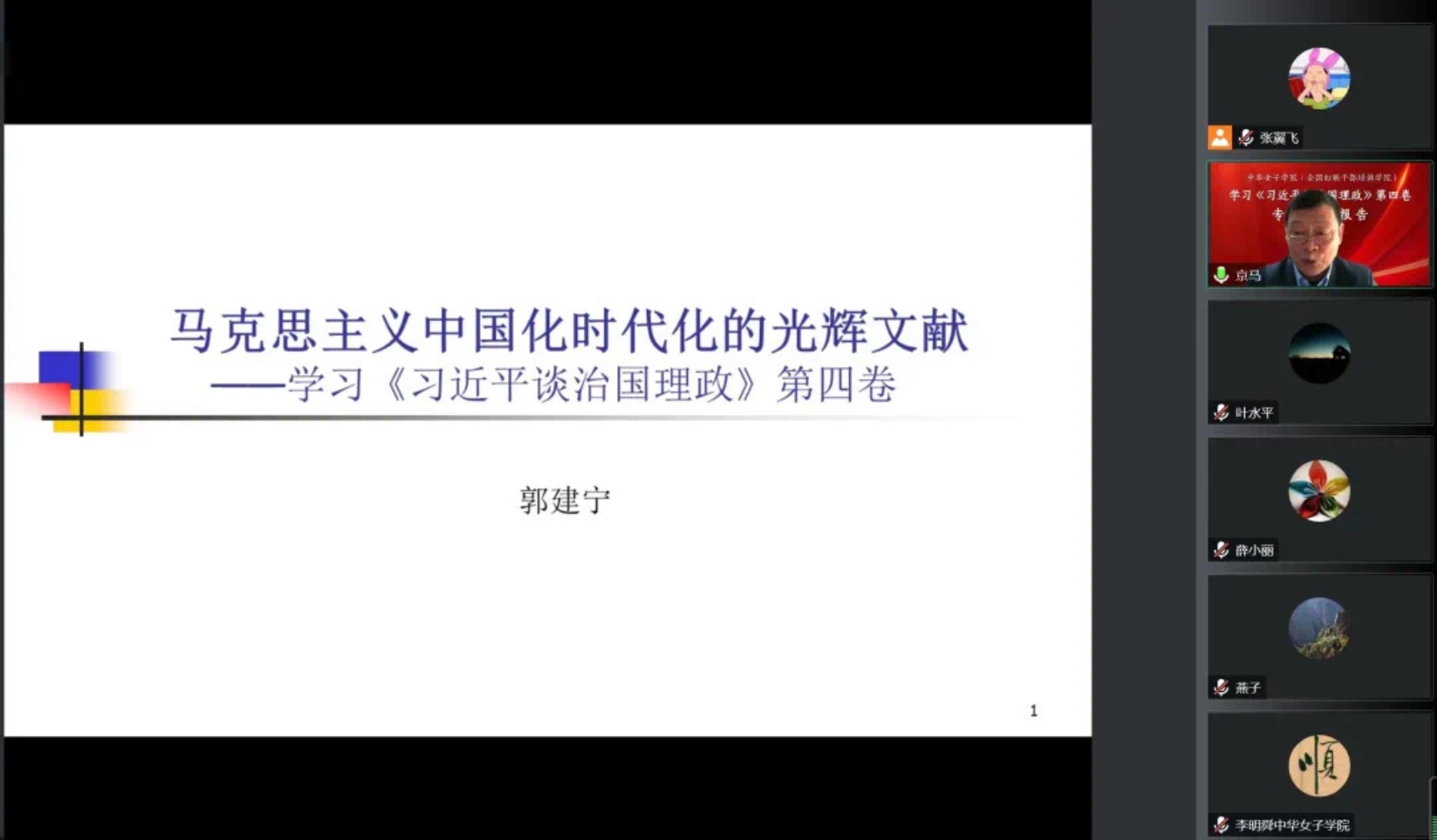 为推动广大党员、干部和群众深入学习贯彻习近平新时代中国特色社会主义思想,深刻领会“两个确立”的决定性意义,增强“四个意识”、坚定“四个自信”、做到“两个维护”,根据学校党委工作安排,学校于2022年10月5日举办学习《习近平谈治国理政》第四卷专题辅导报告,邀请北京大学教授、习近平新时代中国特色社会主义思想研究院研究员、全国二十一世纪马克思主义研究会副会长郭建宁作题为“马克思主义中国化时代化的光辉文献——学习《习近平谈治国理政》第四卷”辅导报告。党委书记李明舜主持报告会。