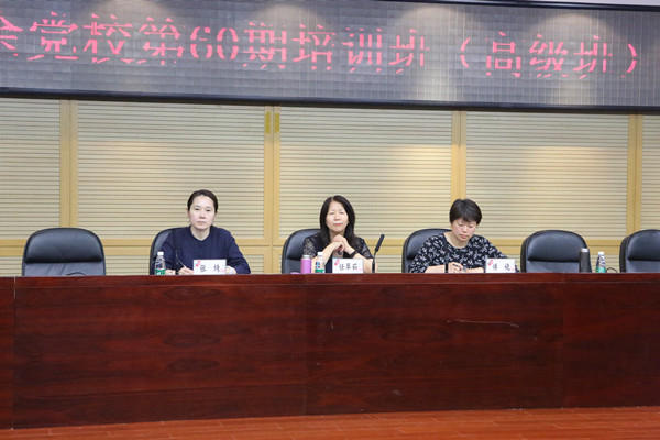6月12日下午,中华女子学院业余党校第60期培训班(高级班)结业仪式在教图楼一层报告厅举行。学校党委副书记兼纪委书记任翠茹同志、计算机系党总支副书记张绮同志、各院系党务辅导员出席了结业仪式,结业仪式由外语系党总支副书记傅娆同志主持。