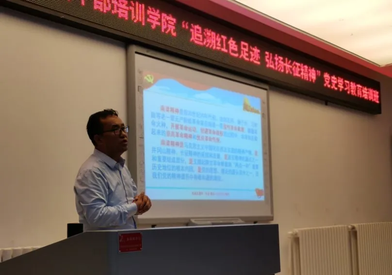 随后学员们聆听了庆阳市委党校副校长刘连志的专题讲座——“南梁精神及时代启示”,理解了 “面向群众,坚守信念,顾全大局,求实开拓”的南梁精神的内涵,了解了刘志丹、谢子长、习仲勋等老一辈革命家创建以南梁为中心的陕甘边革命根据地的史实和感人故事。