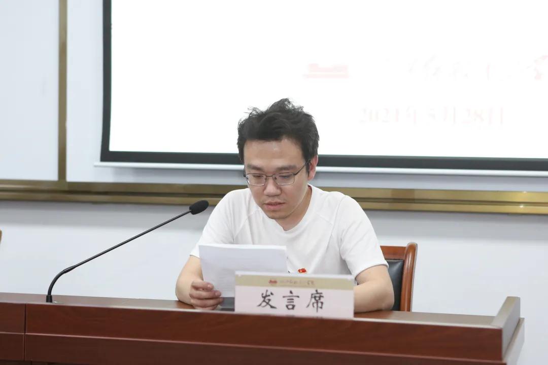 党群联合党总支优秀党员代表雷鸣在发言中重温了内涵深刻的“红船精神”,从思想武器、精神支撑、道德力量、中国人民最可贵精神四个方面联系思想工作实际谈了学习收获。
