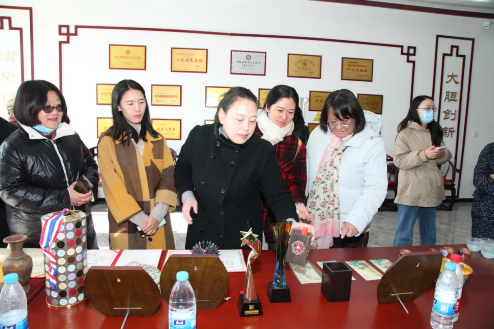 在巧手脱贫基地、妇联执委工作站(燕京景泰蓝艺社),调研团队了解妇女脱贫致富、建功立业的事迹和经验。三河市妇联执委、工艺社总经理、廊坊市级非遗代表性传承人张金香,为大家讲解景泰蓝工艺和工坊所获得的艺术成就。教师们现场观摩掐丝工作室和上釉工作室妇女工作者们制作景泰蓝工艺的过程,参观景泰蓝艺术品展览。大家对景泰蓝工艺品展现出高度的热情,惊讶于工艺的精美与匠人们超高的制作技艺,也为妇女工作者专注执着的工匠精神点赞。