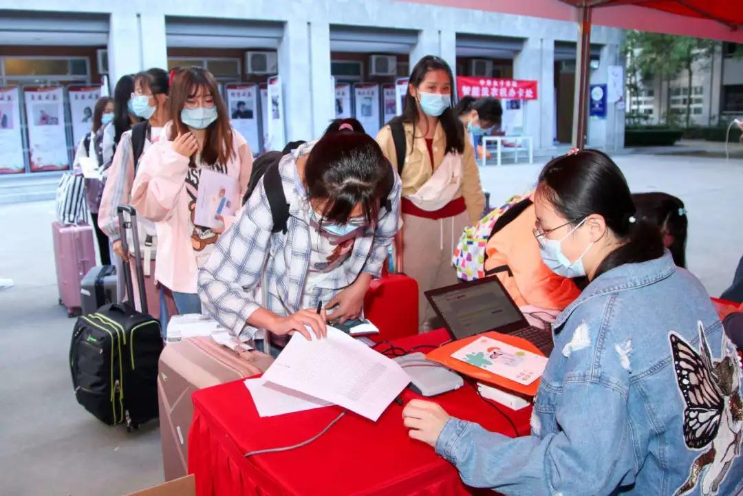 学校一如既往采用数字化一站式报到服务,各类报到手续集中办理,报到工作人员只需扫描学生录取通知书二维码或采用身份证扫描仪即可快捷办理报到节点的手续,大大缩短了报到等待时间。新生们通过关注女院公众号或迎新系统,也可获得关于报到流程的提示与说明。因避免聚集,新生人脸识别工作将于新生报到后分批进行。