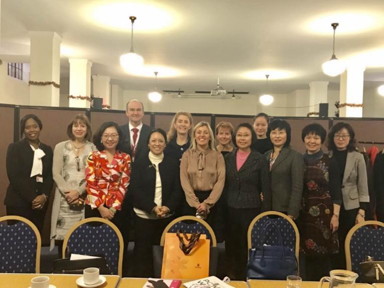 2017年学校成为北京市“一带一路”国家人才培养基地项目学校。学校随后开展了“一带一路”国家人才培养基地项目卓越女性领导力培训班,学员来自泰国、越南、老挝、巴基斯坦、尼泊尔等“一带一路”国家高校和妇女组织。2019年,学校承办了中联部外国政党妇女干部培训班,学员来自亚非欧大洋洲国家。这些学员在我校经过学习和实践活动,既学习了理论知识,又有亲身的实践感悟。承办国际妇女培训项目,既提升了我校教育教学水平,又促进了中外妇女间的理解交流,有力的发挥了学校民间交流交往窗口的作用。