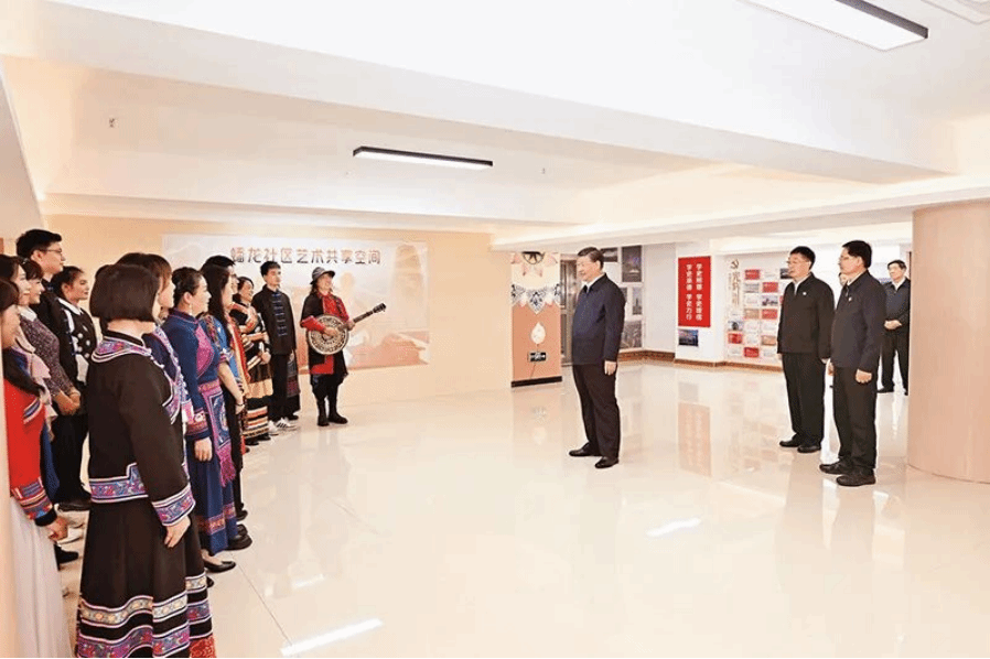 2023年12月14日至15日,中共中央总书记、国家主席、中央军委主席习近平在广西考察。这是14日上午,习近平在南宁市良庆区蟠龙社区党群服务中心文体活动室同社区居民亲切交流。 新华社记者 谢环驰/摄