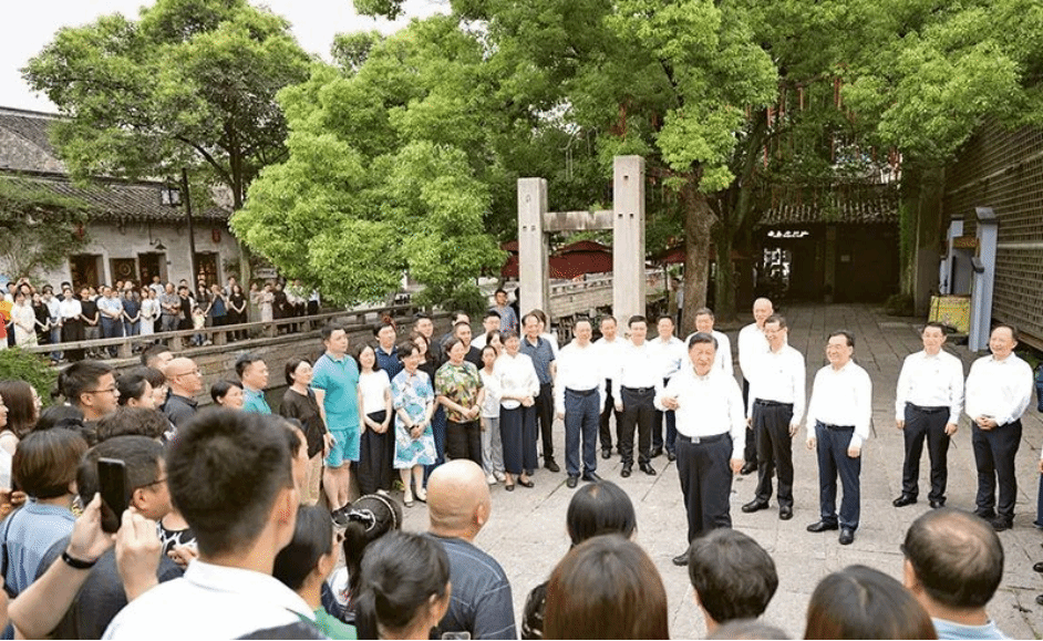 2023年7月5日至7日,中共中央总书记、国家主席、中央军委主席习近平在江苏考察。这是6日上午,习近平在苏州平江历史文化街区,同当地居民和游客亲切交流。 新华社记者 燕雁/摄